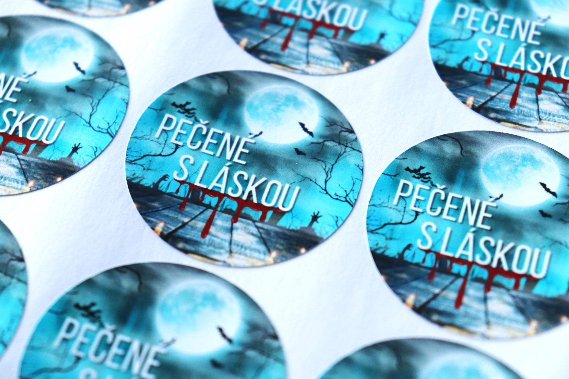 Arch obsahuje 24 ks samolepek velikosti 3,9cm. Papír může být matný nebo lesklý.